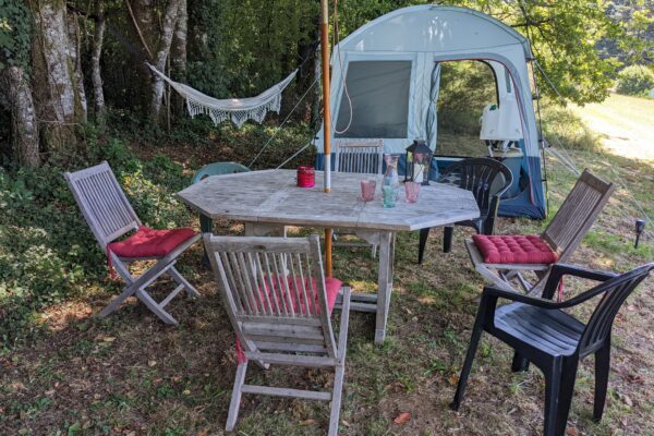 Op Les Saules is het ouderwets kamperen. Hele mooie plaatsen voor tenten, caravans, vouwwagens en campers. Het tentenbos ligt achter de boerderij en alle plaatsen ( 1 t/m 11) zijn heel prive. Rondom de heuvel hebben we plek voor de grotere caravans en campers met vrij uitzicht. Het onderste gedeelte van de camping is een mix van alle kampeermiddelen. Mooie ruime plekken met schaduw en zon en altijd prive.