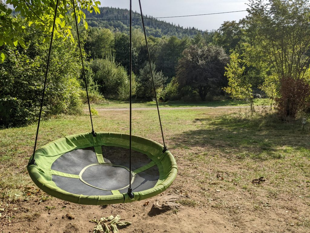 Er is een leuke speelkamer vol speelgoed, een speelkasteel, een speeltuintje met een speelhuisje, schommels, een zandbak, een glijbaan en een trampoline.